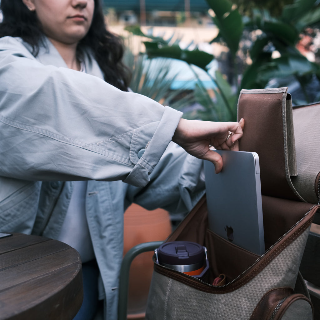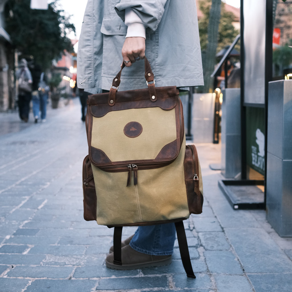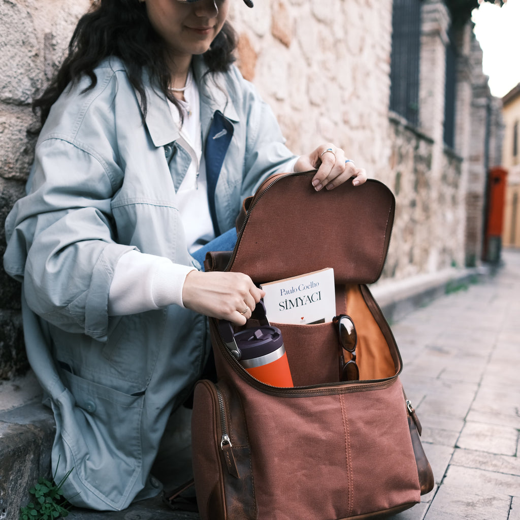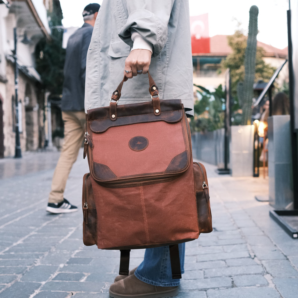 Özel mumlu kanvas kaplaması sayesinde suyu yüzeyde tutar, içeri sızdırmaz. Ani yağmurlar, sıçramalar veya zorlu hava koşulları artık çantanız için bir tehdit değil. Şıklığınızdan ödün vermeden eşyalarınızı her an güvende tutun.